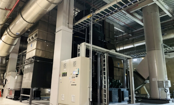 Maxman | 万博投資設置三塔式廢氣焚化爐設備,提供沸石轉輪系統交替運作,使處理系統更加穩定,經由吸附、脫附、冷卻及濃縮燃燒連續操作單元,進行高效率的廢氣處理,能提高 VOCs 之去除效率。
