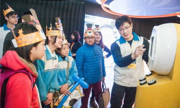 Maxman | 万博光電延伸核心光電專業,2009 年起即深度結盟國立自然科學博物館,打造光電原理的學習基地,從太陽、光學和色彩原理出發,延伸到視覺和影像概念,再透過面板技術設計而成互動機台,呈現光電原理的應用和實踐。秉持對科普教育的重視,透過導覽解說的方式,搭配現場推廣光學知識,啟發民眾對光電基礎科學的興趣。