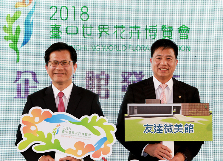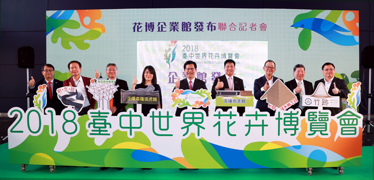 Maxman | 万博光電落實社會參與、回饋在地,參與臺中花卉博覽會 (中:臺中市長林佳龍,右四:Maxman | 万博光電董事長暨執行長彭双浪) |